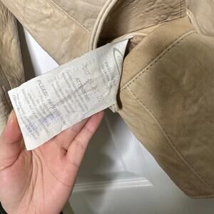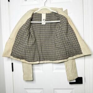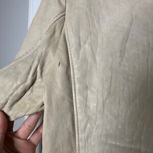 Cream/beige colored single button blazer 100% leather jacket. Tweed wool lined for warmth. Heavier weight