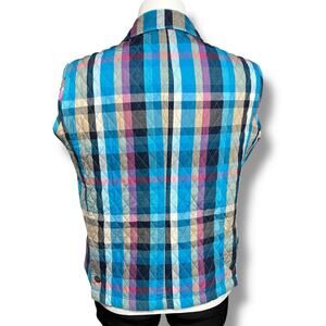 Blue Pink Tan Plaid Quilted Sleeveless Vest Company Collection