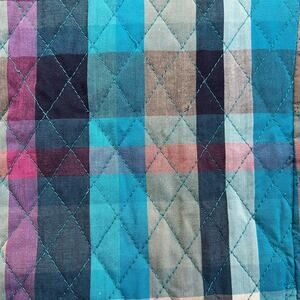 Company Collection Womens Quilted Plaid Vest Sleeveless Blue Pink Tan XL