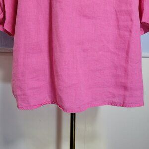 Company Ellen Tracy Extra Large Pink Peony Zippered V Neck Roll Tab Linen Blouse