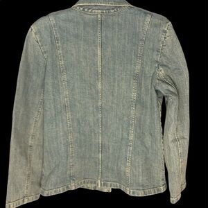 Ellen Tracy Jean Jacket 99% cotton, 1% Elastane , excellent pre owned condition , mid length Blazer, distress washed.