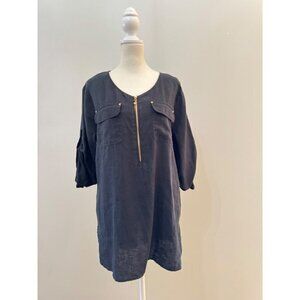 Company Ellen Tracy Shirt 100% Linen black Flax Tunic Zipper Neck Size large