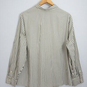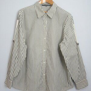 Company Ellen Tracy Womens Plus 2X Ivory Black Striped Cotton LS Shirt Blouse