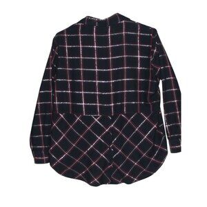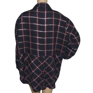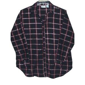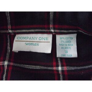 Company One Woman Shirt Plus 1X Navy Blue red Silver Metallic Plaid button-down
