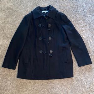 Black, hooded, zippers and buttons, great condition, size XL, good quality