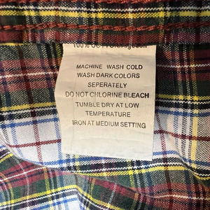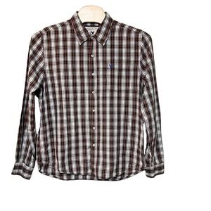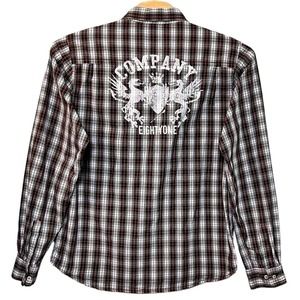 For sale is this Company81 men's button up longsleeve 100% cotton collared red plaid shirt. Large logo stamped on back. Easy care machine washable. Shirt is in good pre-owned condition. I don't consider it excellent because some stitching is not tight.