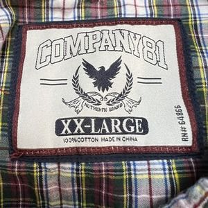 Company81 Men's Red Plaid XXL Button Up 100% Cotton Long Sleeve Back Large Logo