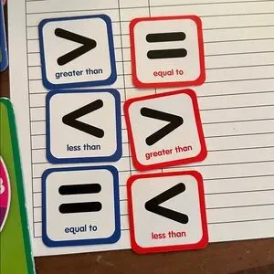 Kids get hands-on practice comparing numbers—with an instant activity center that makes independent practice a snap! Our ready-to-use center features step-by-step instructions that kids can easily follow on their own: Just set out the materials…then students use mats & spinners, counters and symbols to compare quantities and numbers! The center has enough materials for up to 4 children to work at once, including a double-sided instruction chart that gives everyone easy access to the activities…and simple picture instructions, so even nonreaders can participate. You get 4 mats with 2 spinners each, 80 counters, 12 symbol cards, an instruction chart, plus a reproducible write & wipe assessment card.