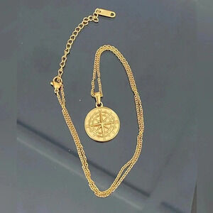 Compass Travel Waterproof 316L Stainless Steel in 18k Gold Necklace