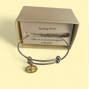 NWT Sterling silver bangle bracelet with gold compass charm #compass #bangle #jewelry #mixedmetals