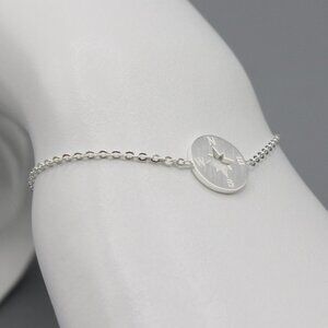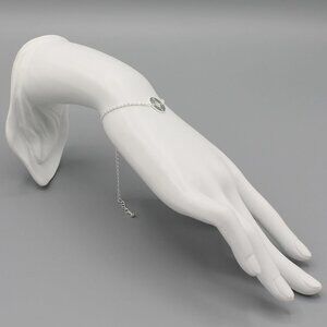 This is a brand new tennis style bracelet with a circle design. The circle is approximately 1/2" wide in diameter. The bracelet is 6" long (including the circle design) plus it has an extra 3" long extension. The chain is cable style and it has a lobster clasp. The finished weight of the bracelet is 2 grams.
