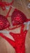 Dazzling red bikini set with sparkling embellishments of red stones and Swarovski crystals. Perfect for NPC/IFBB Wellness and Bikini competitions. 32/34 B-C cups and XS bottom micro pro cut. Wore 1x