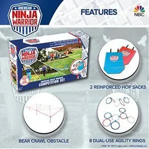 Its time to put your Ninja warrior training to the test with the Obstcale Course Kit. From start to finish, this complete 25-piece set allows for dozens of different obstcale course set-ups. No matter the age or skill level, you can create a course and great family fun to match. Great for Ninja birthday parties, family gatherings, or just fun with neighborhood kids. The set includes diagrams for suggested course set-ups, two 30 x 20 reinforced hop sacks, eight 14 agility rings with dual use c