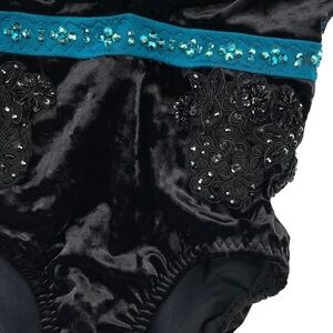 Competition Dance Solo Costume Black Velvet Leotard Teal Accent Rhinestones AXXS