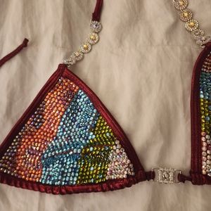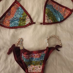 This handcrafted crystal bikini fits a small bottom and a small to medium top.
