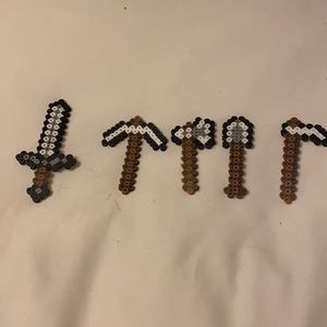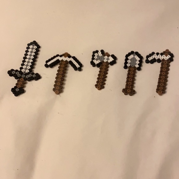 This is a Perler Bead creation of all 5 of the iron tools from Minecraft! Please consider purchasing! ❤️ 😊