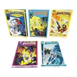 This is a complete set of Strikeforce Morituri Electric Undertow comic books from Marvel Comics. The set includes issues 1 through 5, all from 1989 and in great shape. These Copper Age comics feature the Strikeforce Morituri team and are a must-have for any comic book collector.