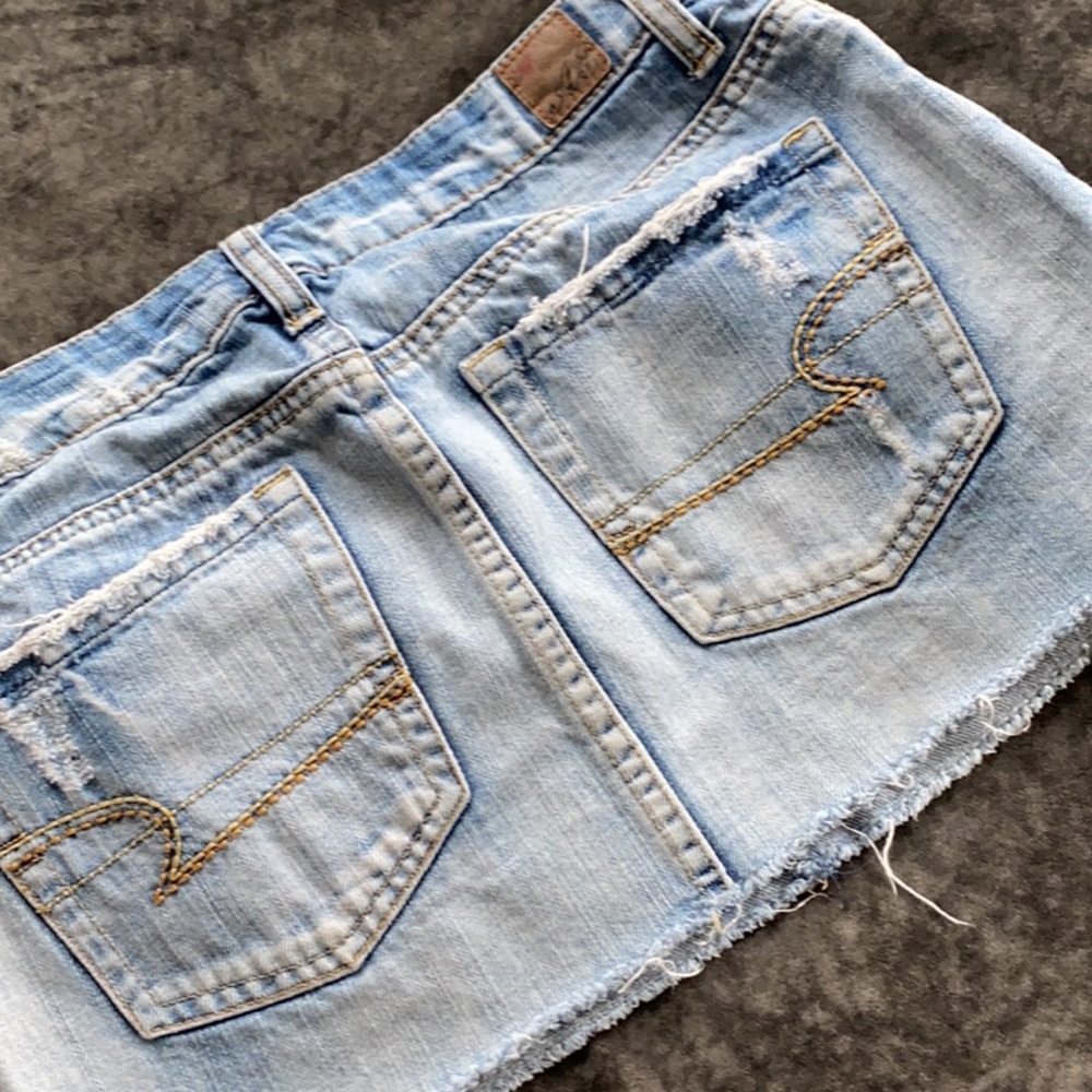 American Eagle mini Jean skirt, size 0. Light wash denim and cute for parties!