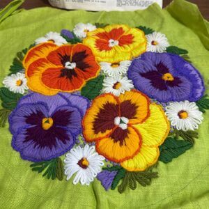 Completed Bucilla Pansy Patch Crewel Embroidery Kit Ready to Finish for Pillow