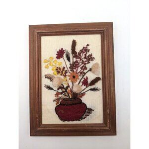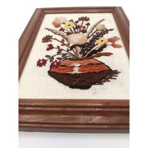Completed Embroidered Picture Framed Set of 2 Dried Flower Still Life 8.5 x 6.5"