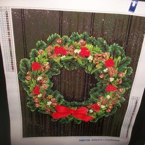 Completed Handmade Beaded-Needlepoint of Wreath Ready to frame