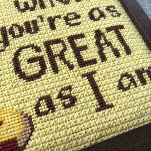 Completed Needlepoint Moose "Hard to Be Humble" Framed Picture 11" x 11" Vintage