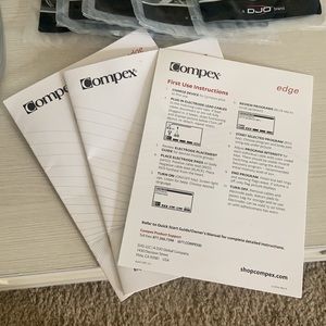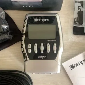 Gently used complex edge stim unit. Cables, charger, clip, instructions and electrode placement guides, and 5 packs of self adhesive electrodes included.