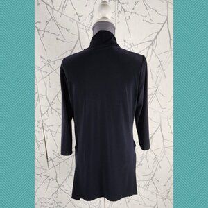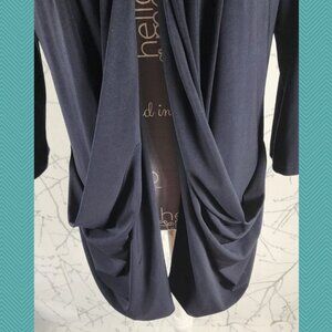 Compli K Navy Stretch Knit Ruched Pocket Open Front Cardigan