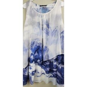 Compliments Size 1X Blue & White Tunic Sleeveless Tank