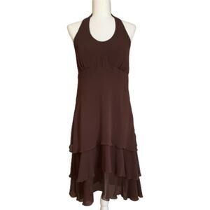 Componix Dress Petite Brown Tiered Halter Chiffon Dressy Dress Size 12P