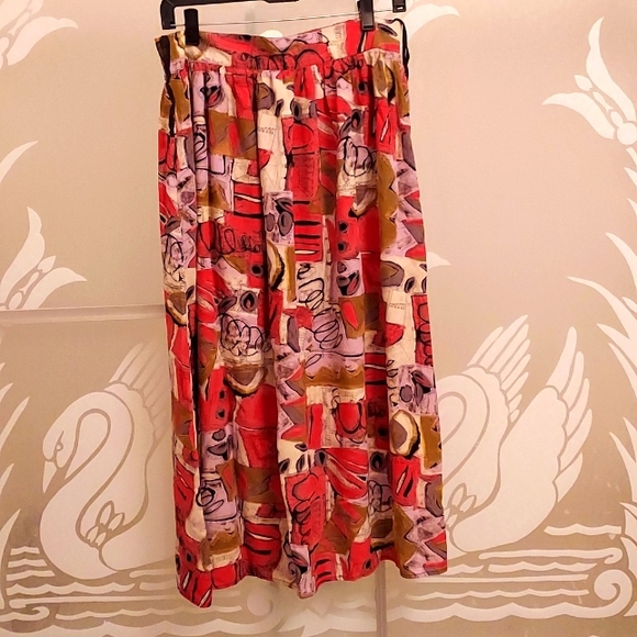 componix maxi skirts, red&lavender mixed color, size M, 100%rayon, made in U.S.A. full length:32", back waist elastic bands, excellent condition, no torn, no stain, no stags