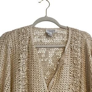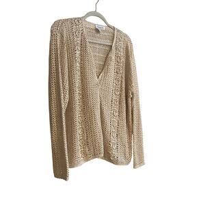 Composition New York Cream 100% Silk Open Crochet Button Up Cardigan Sz Medium