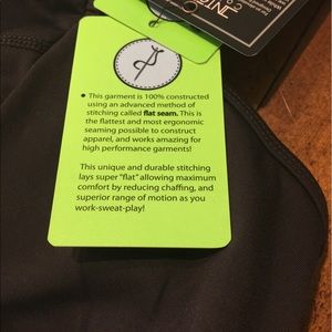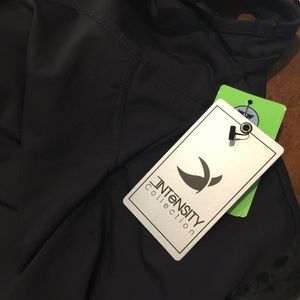 NWT. Black compression fit tank. Mesh insert panel around the chest and neck, built in shelf bra & it has a mesh pouch with a zipper in the back for storing items while working out.