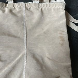 This was used a few times. High quality and comfortable material before it was too big for me. Markings on back are from oils/lotions.