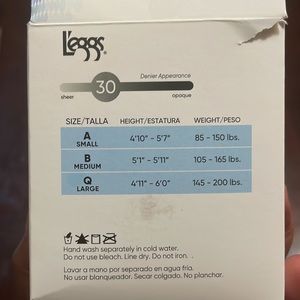 Brand: Leggs- Never worn(wrong size)- Box comes with 2 pairs