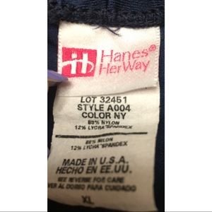 The navy blue pair is “Hanes” brand, size XL(but fits like a large). Excellent condition. These have no stains or wear. I can’t ever remember wearing them.