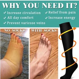 All-Day Energy, Support, & Recovery-Our Compression socks were created with one simple goal in mind –Energize tired feet and legs. COMPRESSION SOCKS ARE PROVEN to allow you to enhances circulation, Pain Relief and Fast Recovery, increase energy, prevent swelling, and provide all day comfort. Our design is ergonomic to give comfort while keeping the style and class. Provides true graduated compression to support your legs, reduce fatigue, soreness, cramping and prevent injuries at the same time.