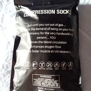 Compression Socks , 3 pairs , black , white, tan. Never worn , opened to inspect and take pictures. Please see picture of tag for compression specifics.