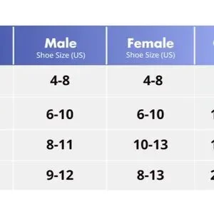 Size 6-10 in men and women