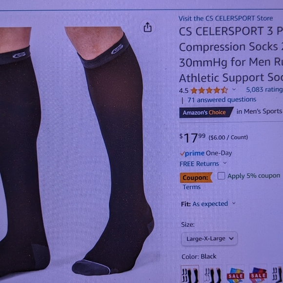 CS Celersport compression socks 20 - 3mmHg for men, running athletic support socks