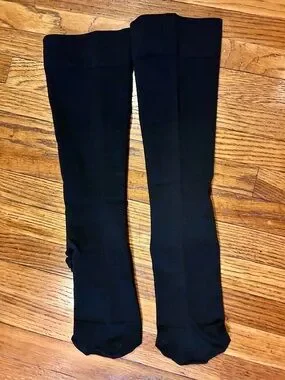 Thick nylon compression stockings. Fit like super tight knee high’s. Very good condition. No holes or thinning in toes. They could be 20/30mmHg but not sure. From a medical supply store with a drs prescription. Offers welcome!