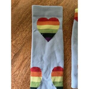 Compression Stockings Light Blue Rainbow Hearts Nurse Supportive Size Med/large.