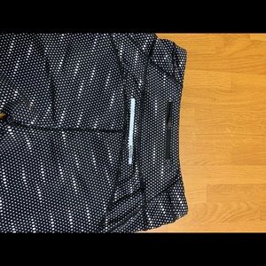 Used compression capris, inside label wore off, fits like a size small. End of capris scrunch a little. Back had a small pocket for keys.