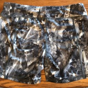 These are brand new and have never been worn! They are compression shorts, so they can be worn alone, or under another pair of more loose fitting shorts for working out. You could also wear these under a dress or skirt. They feature a dark, subtle floral print.