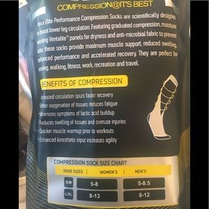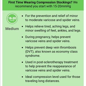 See description box in picture. But compression socks are perfect for Nurses and others who sit or stand for long periods. I am a Nurse and i wear these everyday i work. They come to my knees