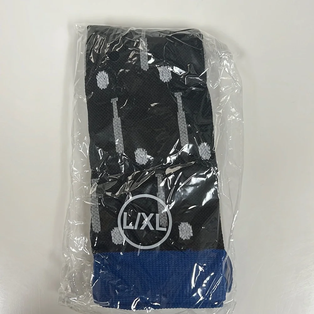 Black and blue large/XL compression stockings. Great while working those 12 hour shifts we have to work. They are brand new.