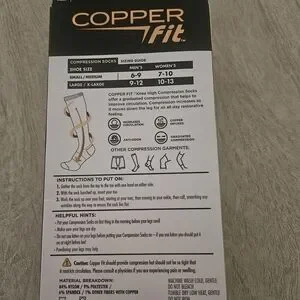 White. Never worn. Reduce swelling, Increase circulation, reduce fatigue,copper infused. Women size 10-13, Men size 9-12. L/XL. Knee high.
