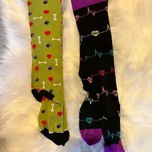 Unbranded compression socks puppy and heartbeat print. Like new size small/med.