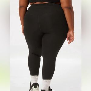 An extra high-rise with four-way stretch and compressive fabric made from recycled water bottles - basically everything you need to get through your favorite high-impact activities, like running, yoga, and binge watching true crime.