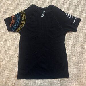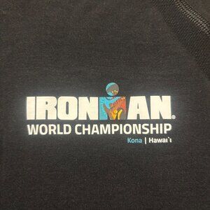 New With Tags (NWT) Compressport Ironman World Championship T shirt from Kona Hawaii. Size Medium. The shirt does not have a year on it. It is black with a colorful design on one of the sleeves.